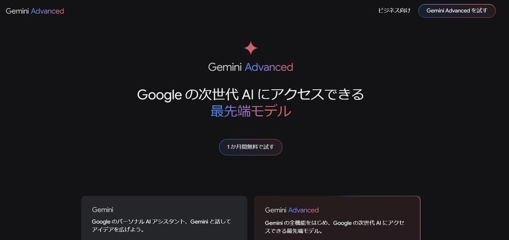 個人的に使っているGoogle WorkspaceのプランがBusiness Standardのため、ちょっと前の価格変更(値上げ)の際にGemini Advancedも内包されて使えるようになりました。