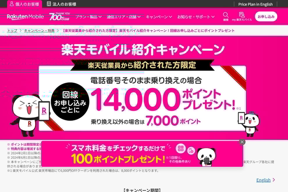 三木谷リンクで7,000ポイントお得に新規契約!楽天モバイルを1回線追加しました